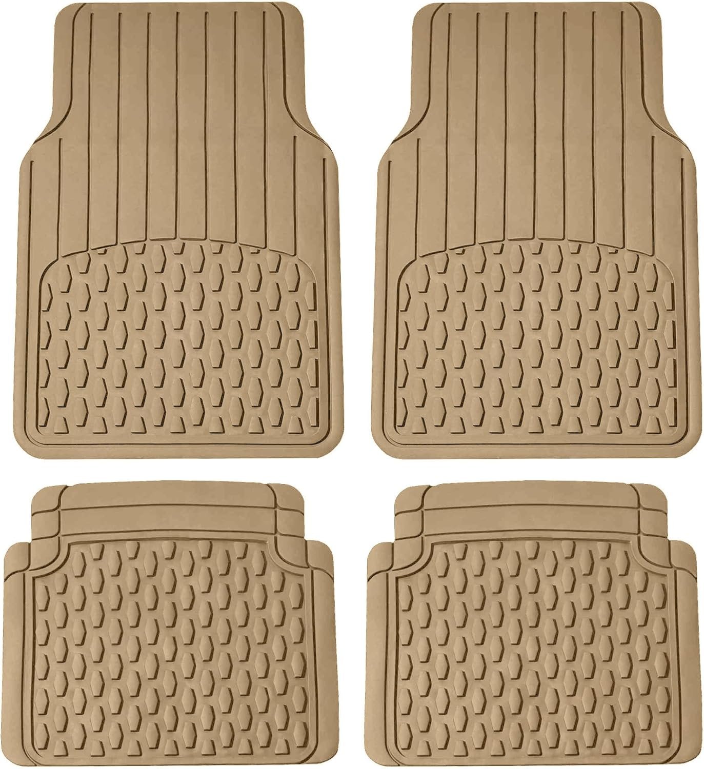 Automotive Floor Mats – Heavy-Duty Rubber Floor Mats for Cars, Universal Fit Full Set, Floor Mats, Trimmable Floor Mats For Most Sedan, SUV, Truck Floor Mats Beige