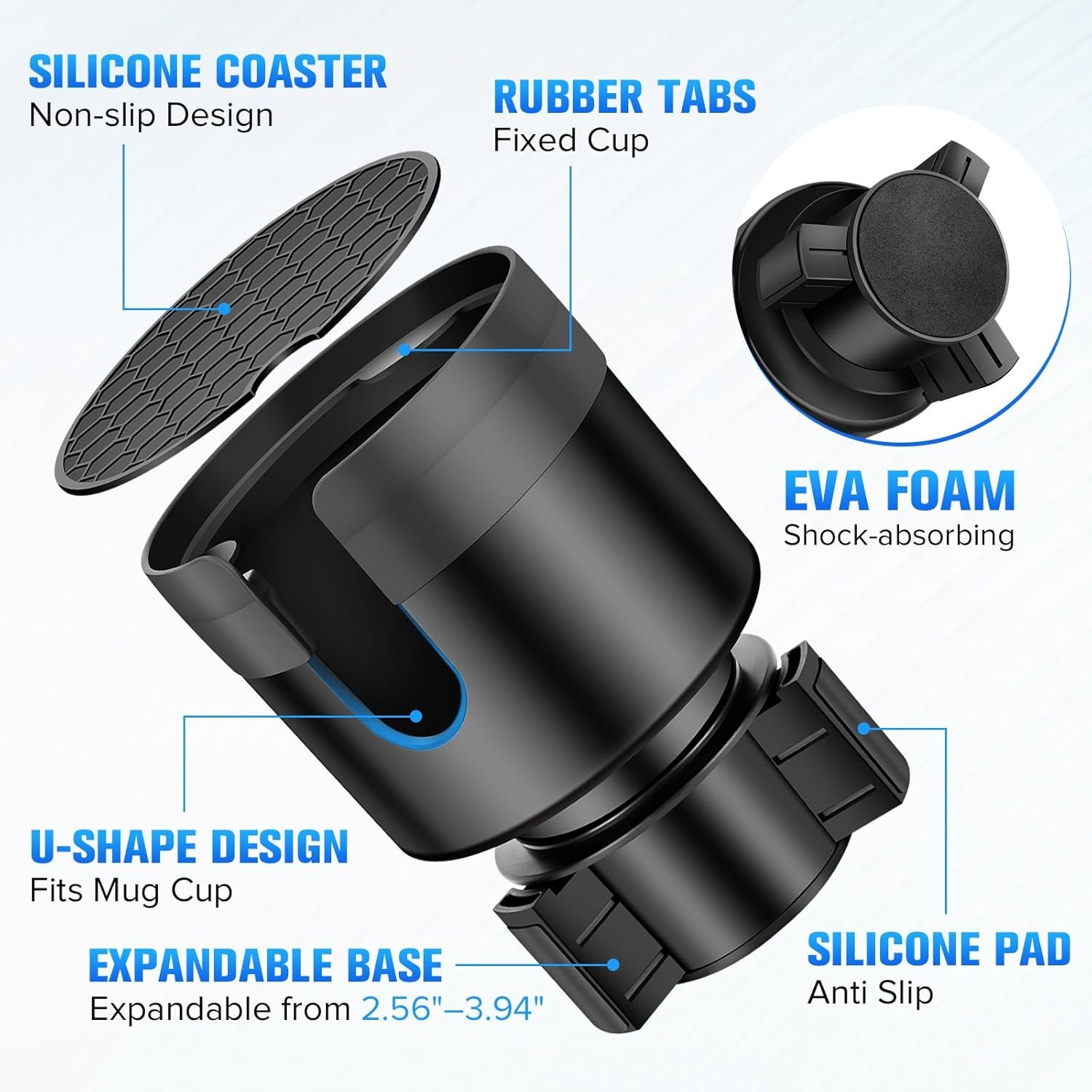 - Built-In Protective Features: The interior is lined with soft silicone to cushion your cup, while anti-vibration foam at the base absorbs shocks. This car cupholder expander protects your drink by reducing wobble and preventing damage