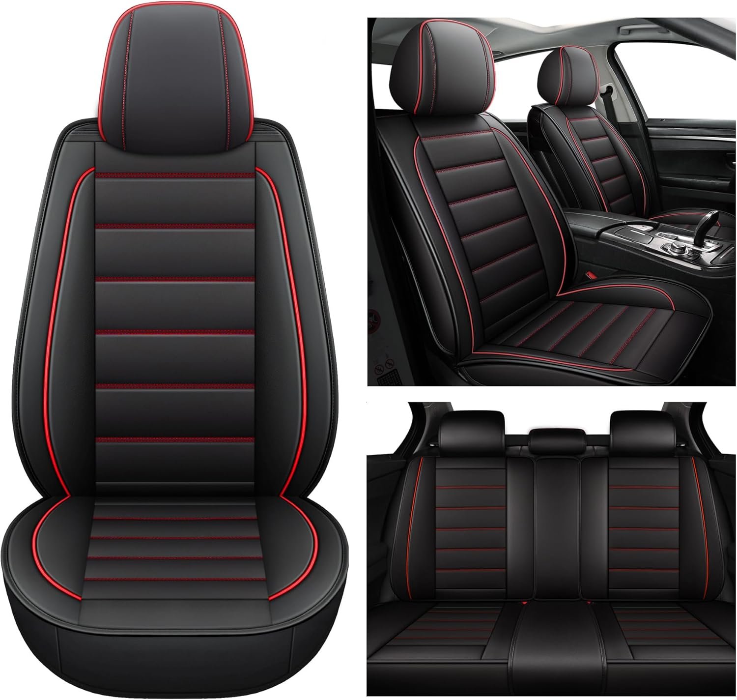 - Effortless 25-Minute Installation: Upgrade your car seat covers in minutes! These faux leather seat covers feature front & rear sets with video instructions. No seat removal – simply tuck & secure with elastic bands
